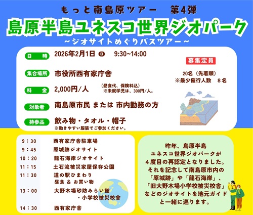 【2/1(日)】もっと南島原ツアー第4弾「島原半島ユネスコ世界ジオパーク」ジオサイトめぐりバスツアー(1/28申込〆)