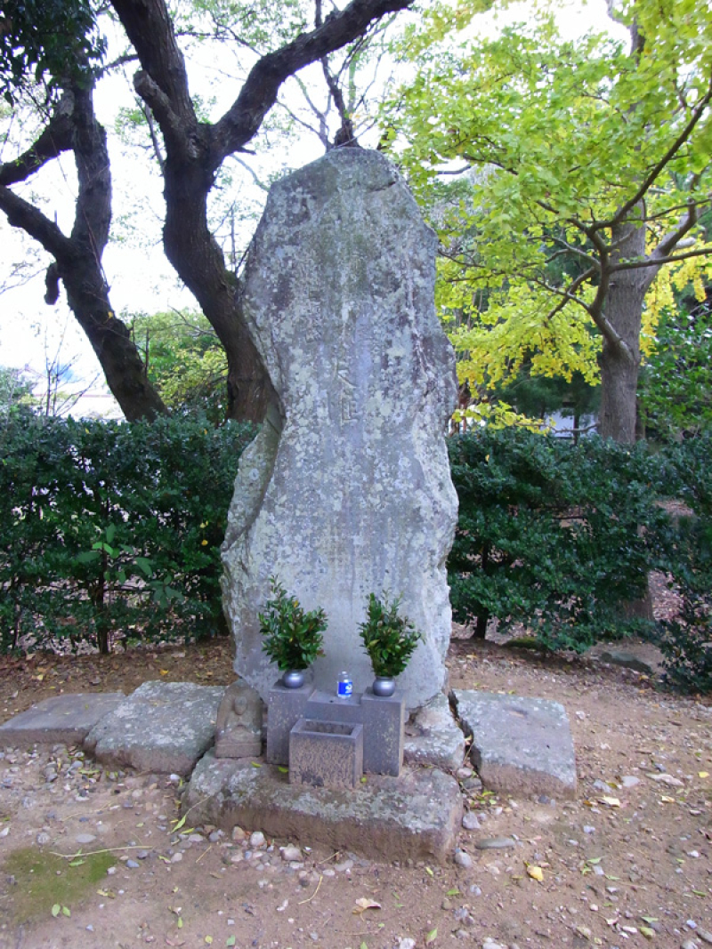 この供養碑は、島原・天草一揆終結後、10年目の慶安元年(1648)、初代天草の代官となった鈴木重成が僧侶の中華珪法(ちゅうかけいほう)を招き禅僧100余人を集めて慰霊の読経を行い土地を清め、建てたといわれるものです。碑文には、鬼理志丹之宗徒、益田四郎の文字が見え、また天草と当郡(有馬)と長崎の三箇所に頸を埋めたことなどが記されています。